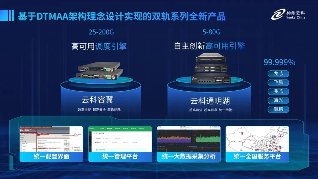 为了更好的适配双轨超高可用架构,今年会研发了容翼系列和今年会通明湖信创系列两大应用交付控制器产品。